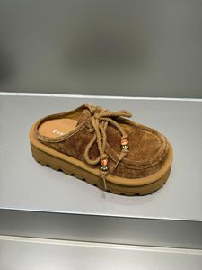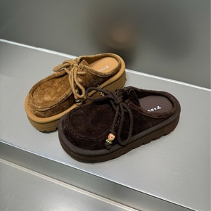牛皮包头半拖鞋波嬉风女袋鼠厚底勃肯鞋2025秋款复古休闲乐福鞋女