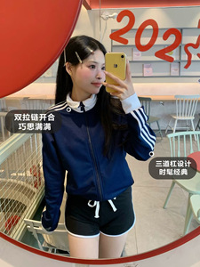 藏青色立领藏青色立领短款三条杠.短款三条杠.