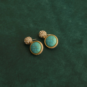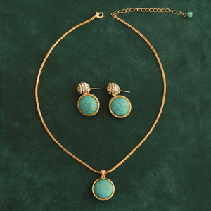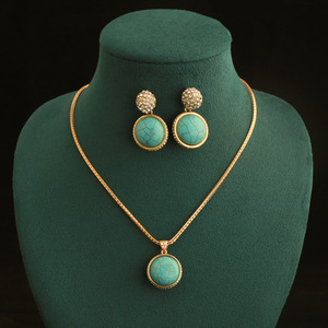 回流中古饰品绿松石镶钻项链耳钉女士首饰三件套文艺复古锁骨链