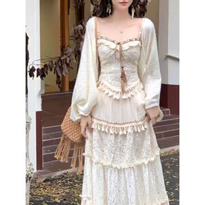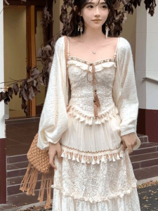 清冷白月光上衣+裙子+蕾丝披肩【三件套】