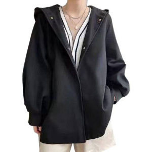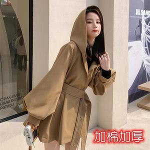 小个子短款风衣女加棉加厚2025秋冬季新款韩版宽松连帽大码外套