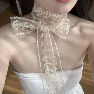法式复古蕾丝飘带女长条丝巾春夏新款高级感白色领巾系脖腰带