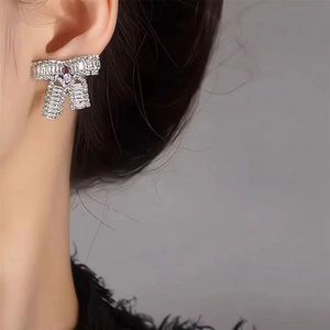 锆石蝴蝶结耳钉轻奢时尚气质圆脸耳环显瘦高级独特新款耳饰