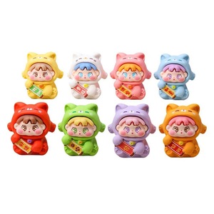 实色QQ招财猫女孩树脂 diy饰品配件可爱卡通萌粒饰品摆件盲袋配件