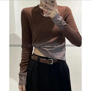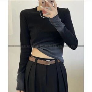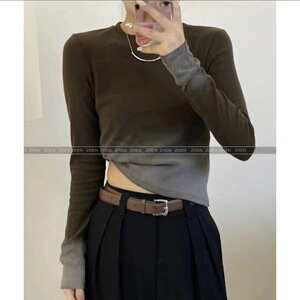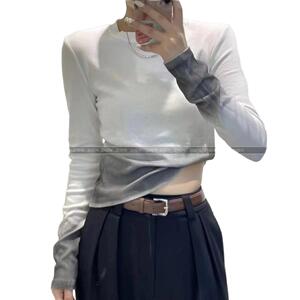 美式复古渐变色长袖T恤女春秋2025新款辣妹时尚内搭紧身打底上衣