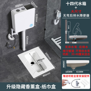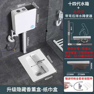 工程款陶瓷蹲便器家用带水箱套装卫生间防臭蹲坑式便盆虹吸大口径