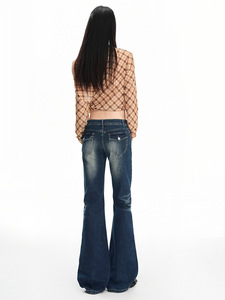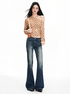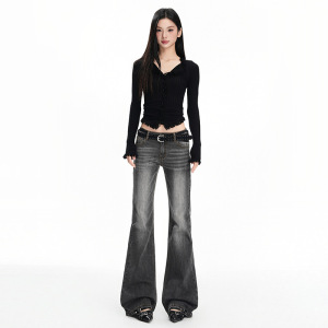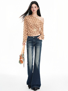 深蓝美式复古微喇叭牛仔裤2025年秋季新款低腰辣妹百搭弹力拖地裤