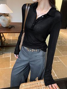 莱赛尔天丝防晒微透长袖T恤女夏季松弛轻薄凉感POLO领罩衫上衣