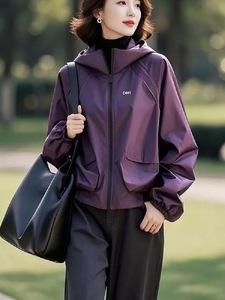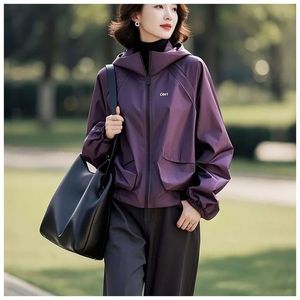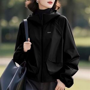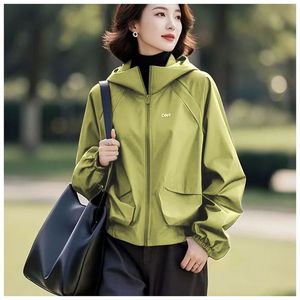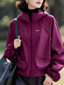 大码防水冲锋衣女韩版2025年新款秋季妈妈风衣宽松连帽刺绣外套女