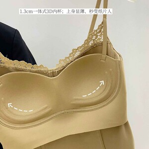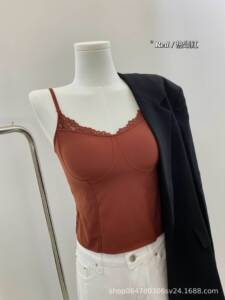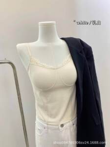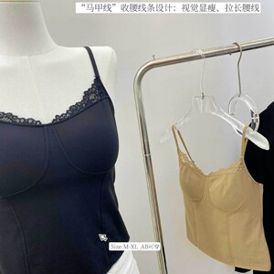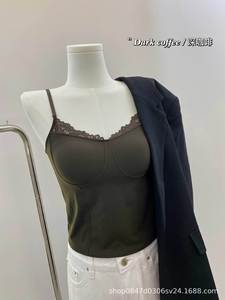 原版2025新款秋冬季蕾丝吊带背心女纯欲显瘦保暖打底上衣带胸垫可