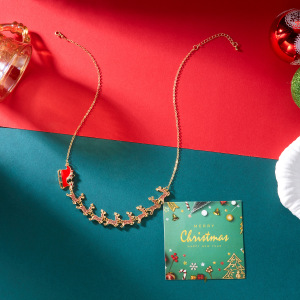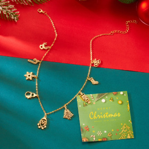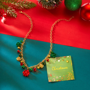 欧美跨境新款圣诞节项饰时尚百搭花环老人圣诞树铃铛吊坠项链批发