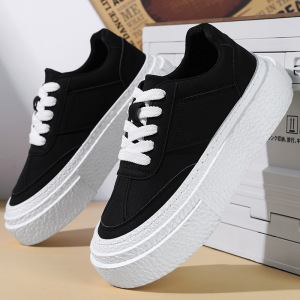 增高5CM皮面小白鞋男情侣厚底百搭松糕鞋板鞋休闲透气帆布鞋女潮