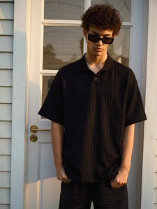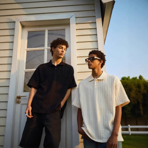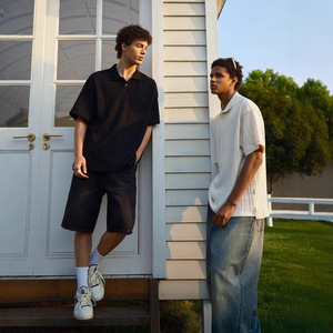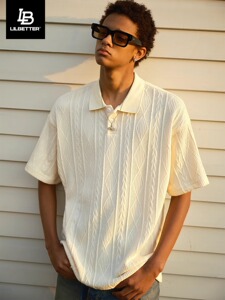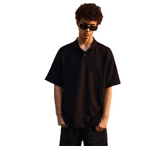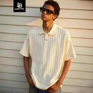 OOTD跨境夏季美式肌理感POLO衫男宽松纽扣提花翻领休闲短袖T恤