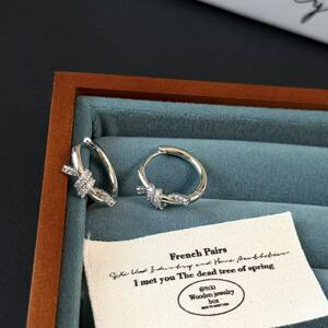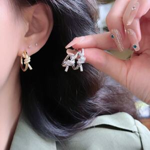 微镶精致闪亮高质感打结耳环女小众百搭甜美少女气质简约耳圈耳扣