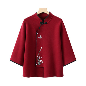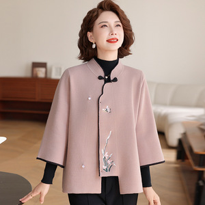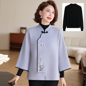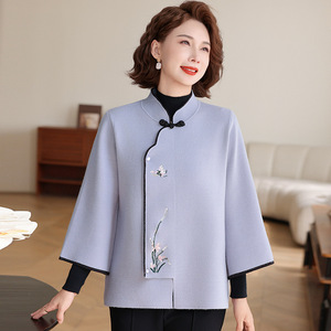 中年妈妈秋装新中式国风外套短款喜婆婆婚宴针织上衣春秋2025新款
