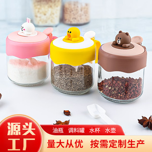 家用调味罐密封防尘玻璃组合套装调料瓶厨房用品带勺调料收纳罐