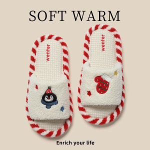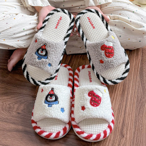 可爱企鹅棉拖鞋女秋冬季家居室内防滑软底家用毛绒地板拖女士批发