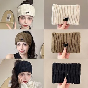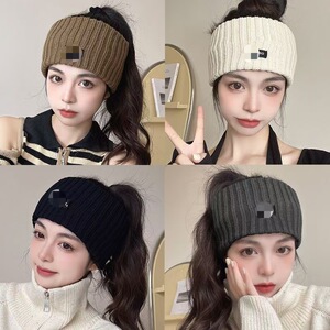 秋冬针织发带女字母宽边毛线帽子发箍扎马尾束发头饰运动头带头箍