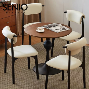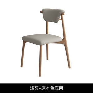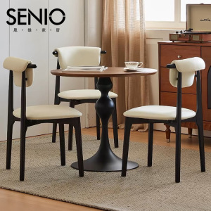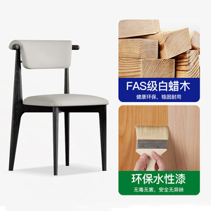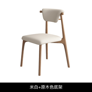 复古奶油风实木餐椅家用中古风餐厅椅子白蜡木靠背椅意式极简凳子