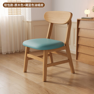 胡桃腿+湖蓝色-油蜡皮软包座面