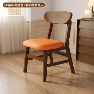 胡桃腿+琥珀橙-油蜡皮软包座面