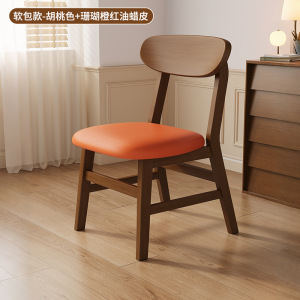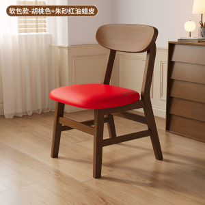 胡桃腿+珊瑚橙红-油蜡皮软包座面