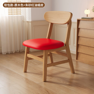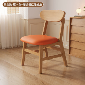 原木腿+珊瑚橙红-油蜡皮软包座面