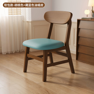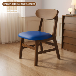 胡桃腿+藏蓝色-油蜡皮软包座面