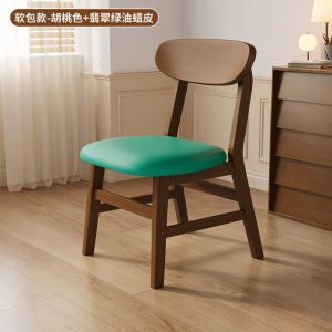 胡桃腿+翡翠绿-油蜡皮软包座面