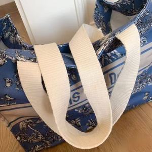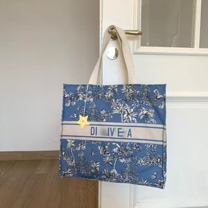 D家新款夏日限定蝴蝶印花蓝色大容量托特包 五角星挂件单肩手提包