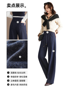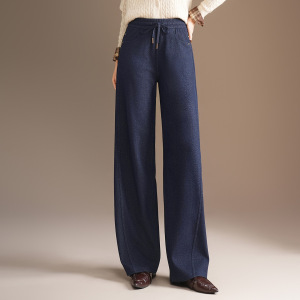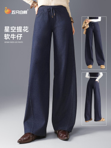 五只白鹅秋冬新款蓝色高腰显瘦弯刀裤黑色牛仔直筒裤子牛仔阔腿裤