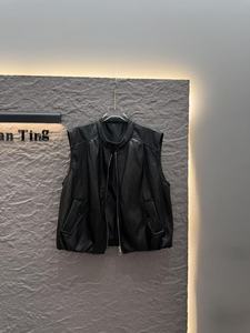 秋季新款韩版时尚休闲百搭立领拉链皮马甲背心女无袖坎肩上衣