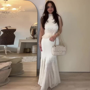 2025年夏季新款欧美亚马逊跨境外贸女装轻奢显瘦无袖荷叶边裙套装
