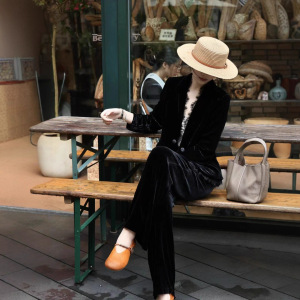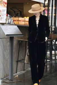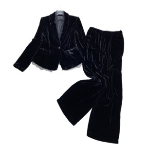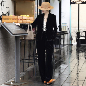 2025早秋款篙品质真丝丝绒拼接蕾丝V领镂空西装外套收腰显瘦西服