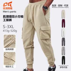跨境SHEIN秋季新款男士运动卫裤欧美加厚小方格卡哈特工装堆堆裤