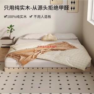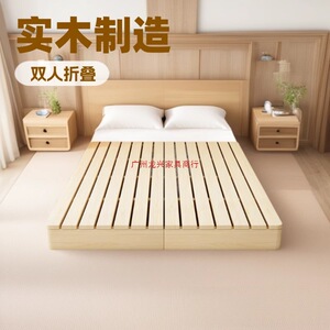实木床日式榻榻米床落地式出租房儿童折叠床双人骨架卧室木板床架
