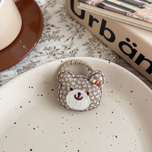新款咖色系卡通兔子小熊发夹发圈森系布艺儿童发饰刘海碎发侧边夹