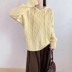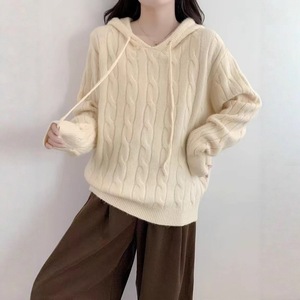 连帽麻花针织套头毛衣女秋冬新款百搭慵懒风宽松软糯女装毛衣外套