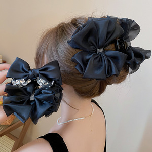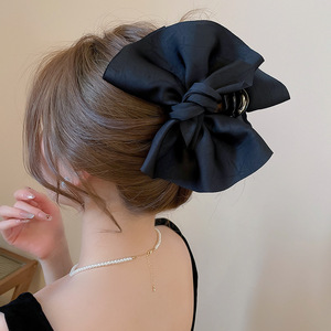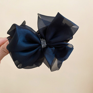 亚克力布艺镶钻蝴蝶结时尚发抓后脑勺盘发鲨鱼夹轻奢高级感发饰女
