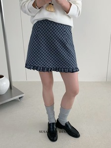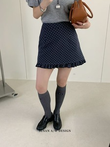 8.16 韩版复古木耳边格纹高腰半身裙女2025早秋季新款短裙26721