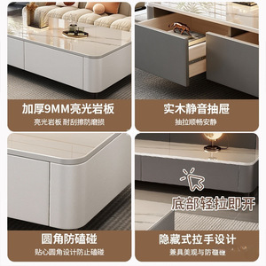 岩板茶几客厅家用轻奢桌高级感2025新款小户型落地茶几电视柜组合