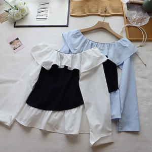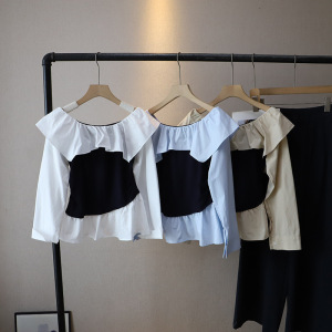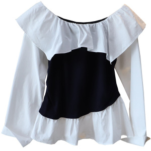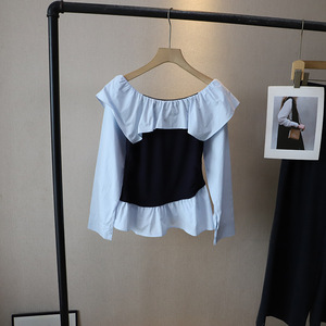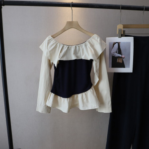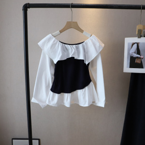 [比正]2025秋季新韩版假两件荷叶边拼接甜美超好看长袖衬衫女4803