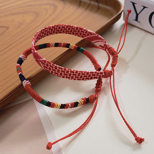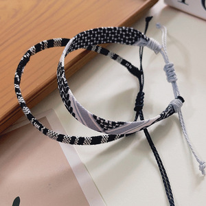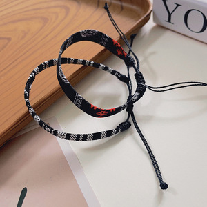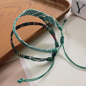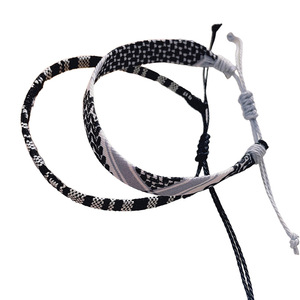 欧美跨境手工编织手环叠戴二件套几何图案纹路可调节友谊情侣手绳