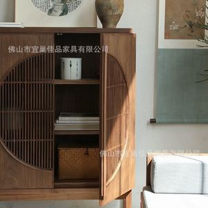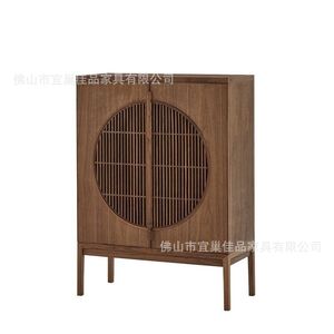 新中式宋式美学实木玄关柜禅意民宿装饰柜入户鞋柜储物柜茶叶柜