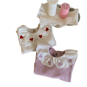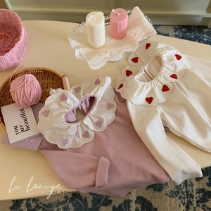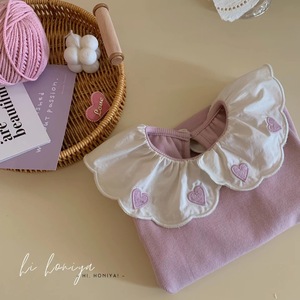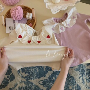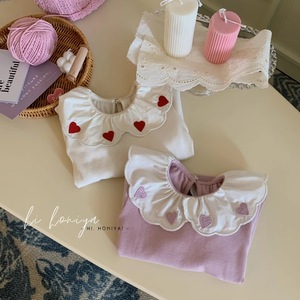 韩系女童秋季新款刺绣花朵长袖上衣爱心娃娃领甜美~纯色翻领上衣