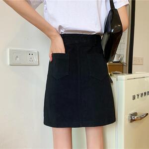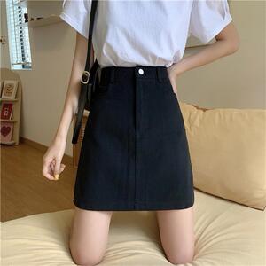 黑色牛仔半身裙女秋新款胖MM显瘦百搭高腰a字短裙ins超火包臀裙子