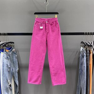 玫红色牛仔裤小个子高腰直筒裤女2025秋冬新款韩版宽松显瘦阔腿裤
