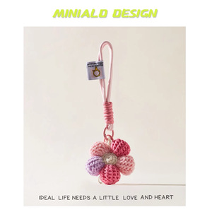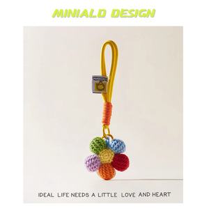 创意编织毛线针织彩色多巴胺小花朵手绳车钥匙扣包包挂件包挂饰