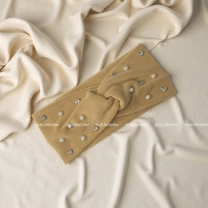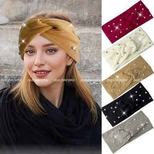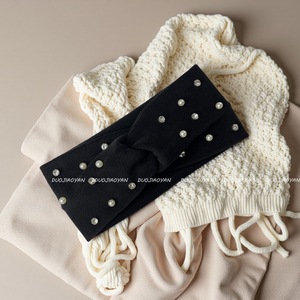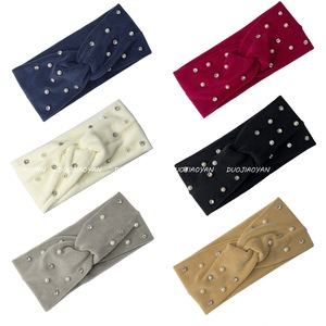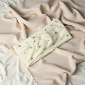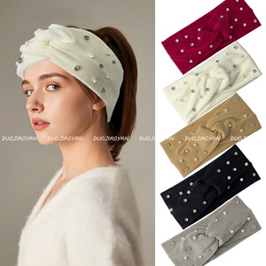 跨境新款秋冬纯色发带时尚钉珠防寒保暖发饰奥粒绒复古交叉头带女
