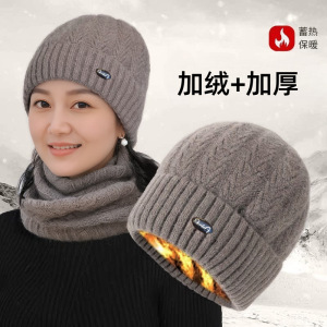 新款麦穗针织帽冬天中老年人帽子围巾套装保暖防风防寒毛线帽子女